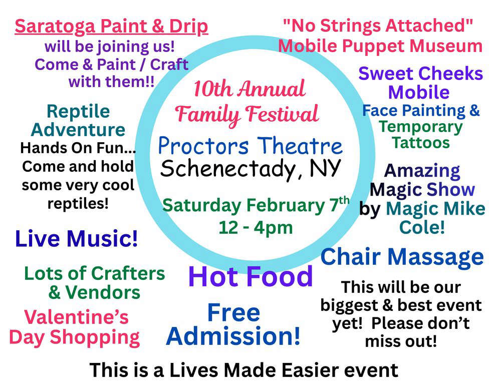 It's the 10th Annual Family Festival with something for everyone! Live music, crafts, vendors, face painting, indoor fun for all ages!