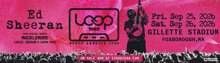 Purchase your seat on the Ed Sheeran "Loop of Love" Tour Bus heading to Gillette Stadium and back and we'll give you a ticket to the show and tailgate snacks thanks to Primo Hoagies!!