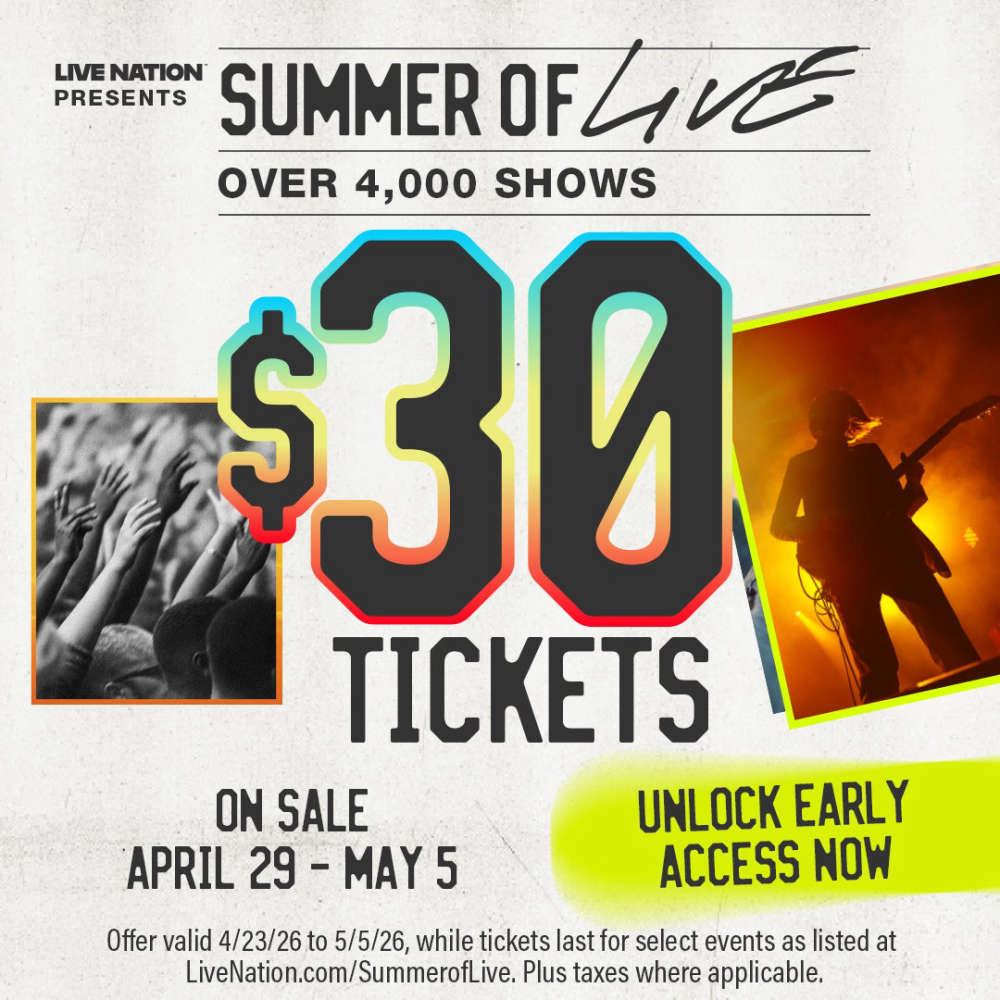 Lock in your summer concert calendar with your Summer of Live $30 Ticket available beginning Wednesday, April 29th through May 5th while supplies last at Livenation.com!