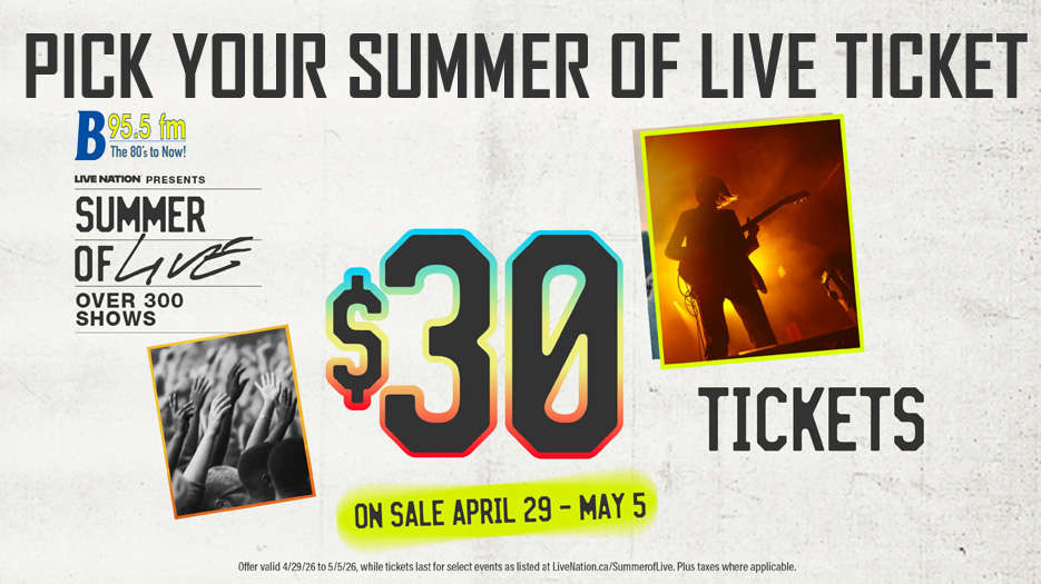 B95.5 and Live Nation are celebrating the Summer of Live $30 Ticket with your chance to